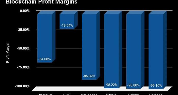 简单来说,其实就是弄清楚区块链为了安全性,是否花出去的钱比通过交易获得的收入更多。而实际情况是,如今没有一个区块链是盈利的——甚至还差得很远。