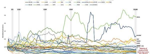 大多数项目(72%)继续低于其发布价格,尽管有一些值得注意的项目对代币持有者来说表现良好。
