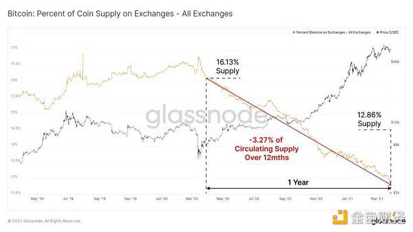这说明了 2020 年 3 月以来交易所余额缩水的幅度。