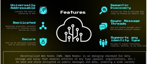 去中心化标识符和去中心化Web节点结合在一起之后,将会构建出一个支持DID安全即时通讯、数据分享和证书交易的网络,可以用所有类型语义数据的通用标准取代一次性协议交换。