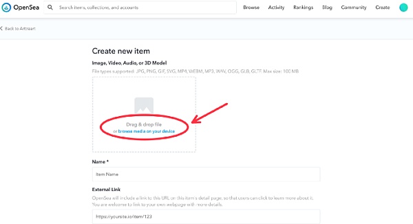 5)上传要作为NFT拍卖的文件(文章的图像)。