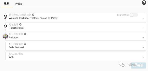 可以看到终端连接到“Westend (Polkadot Testnet, hosted by Parity)”