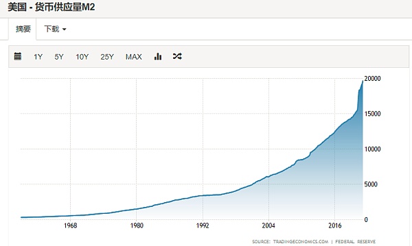 不断膨胀的广义货币是整个金融市场极度繁荣的根本原因,以美国M2为例,已经从2020年4月份的16.1万亿美元暴涨至今年2月份的19.7万亿美元,一年暴涨超3万亿美金。