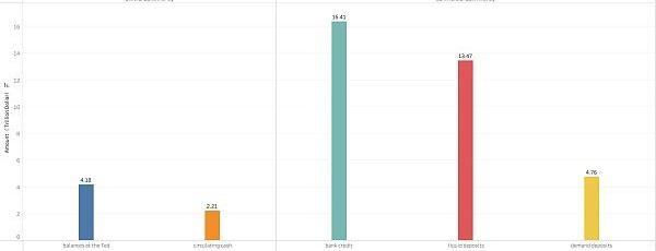 根据报告中同期披露的资产分类,美联储将现有美元划分为美联储持有、商业银行持有和非银行持有三种类型,ALPEX发现上图中,大量的美元属于广义上的银行业,由此可见美国金融的发达,但这种发达同时会带给金融业庞大的现实、经济影响力。