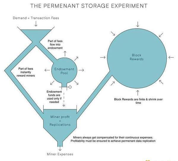 这张图表显示了Arweave如何解决永久性存储经济学问题的基本机制,该图表来自这篇精彩的文章。