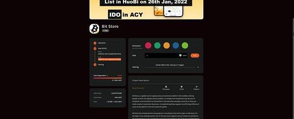 而Bit.Store业即将在近期迎来新的市场进展,有消息称Bit.Store的治理通证STORE,将在2022-01-2501:00:00AM(UTC)-2022-01-2513:00:00PM(UTC)期间以IDO的形式,上线acy.finance。