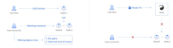 太极网络可以让你直接将已签名的交易提交给矿工(即,星火矿池),无需将其广播至公共交易池。这意味着,你的交易将进入 “清道夫” 的视觉盲区,也就不会被 “清道夫” 的机器人抢跑(至少以我的经验来看是这样)。