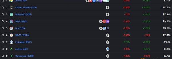 DeFi项目锁定资产前十排名及锁仓量数据来源:defillama