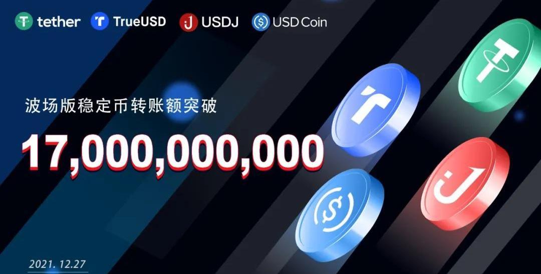 根据区块链浏览器TRONSCAN数据,12月27日,波场版稳定币转账额达到17,639,103,798美元,突破170亿美元。