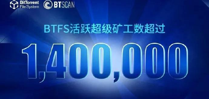 据官方数据浏览器BTSCAN显示,BitTorrentFileSystem(BTFS)活跃超级矿工数超过140万!