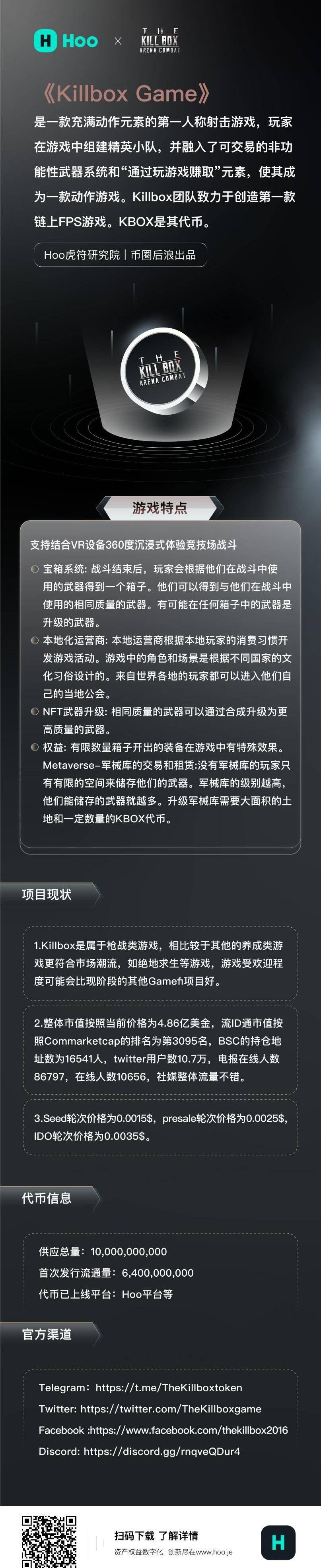 1.Killbox是属于战类游戏,相比较于其他的养成类游戏更符合市场潮流,如绝地求生等游戏,游戏受欢迎程度可能会比现阶段的其他Gamefi项目好。