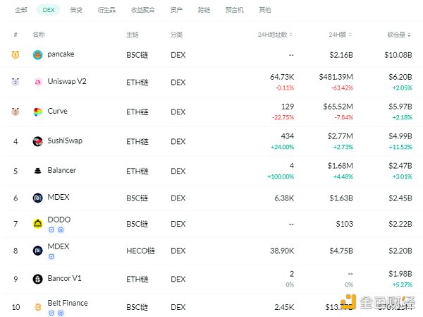 过去24小时去中心化交易所的交易量数据来源:Debank