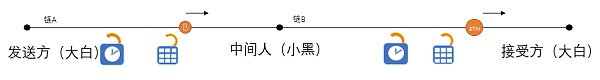 在哈希时间锁定机制中,如果时间超过了规定时间,锁定在系统中的代币将会被收回。因此,加上时间锁有效地促进了大白在小黑规定的时间内解开链 B 上的哈希锁,小黑也会因为自己的利益所需而在大白规定的时间段内解开链 A 上的哈希锁。