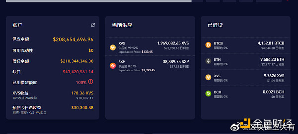 2021年5月18日晚有巨鲸短时间内花了几千万美元把XVS的价格从70多美元拉翻倍至144美元,然后用拉高后价格的XVS作为抵押物以质押率80%借出4100比特币、近万以太坊。