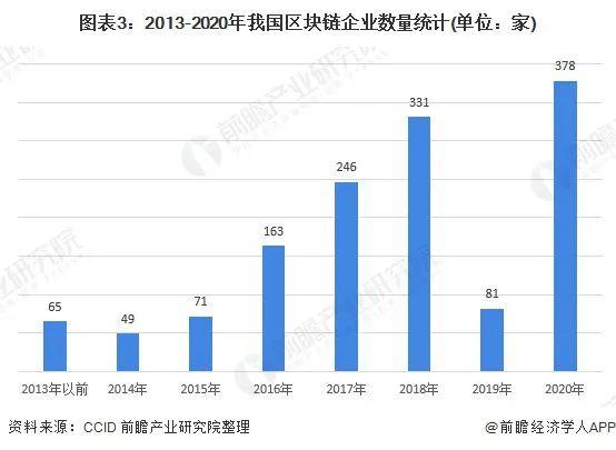 2019年,我国区块链新增企业数量仅为81家。2020年,在区块链技术不断完善、区块链产业链逐渐清晰、区块链应用落地数量日益渐增的背景下,人们对于区块链认知趋于理性,区块链企业规模与竞争实力持续升级。