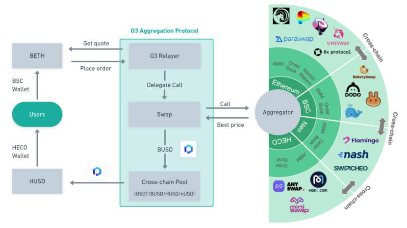 O3 Swap 是由 O3 Labs 团队推出的跨链聚合交易协议,通过聚合以太坊、BSC、Neo、Heco 等链上 DEX 流动性,基于跨链互操作协议 Poly Network 构建跨链交易池,实现加密资产一键兑换。