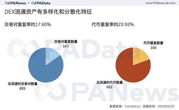 可以推测,目前虽然DEX的流通资产已经比较丰富,但跟中心化交易所一样,低流通量的长尾资产也比较多。