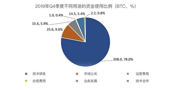 2019年第四季度(10月至12月),基金会使用资金总额为 266.8 BTC,平均每月为88.9 BTC。具体每月支出数额如下(每月支出额随 BTC 价格波动及基金会整体运营情况而变化):
