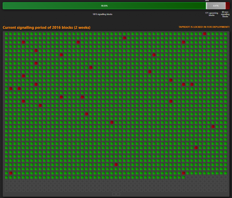 Taproot 是多年来对比特币协议最重大的改进,现在有足够的矿池支持来锁定激活。