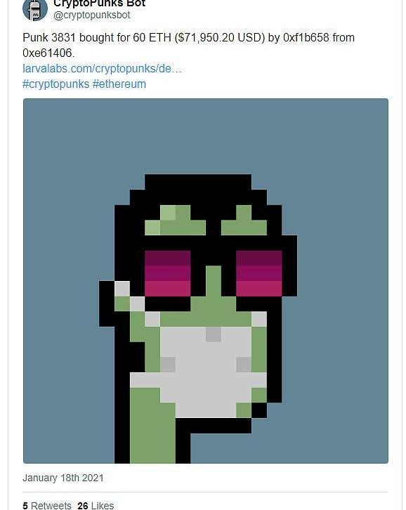 我们每周都会为大家介绍备受瞩目的CryptoPunks活动!我们刚刚看到Punk3831以60ETH出售,Punk6649以45ETH出售,Punk824以30ETH出售,Punk8562以30ETH出售,Punk322以16ETH出售,还有更多……