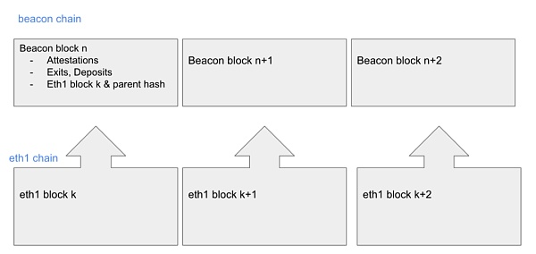 一旦这个 eth1 区块被信标客户端接收,并且满足了各种有效性检查,则该 eth1 区块将被提议者?(proposers)?打包进当前的信标区块中,并成为证明者 (attesters) 要投票的数据的一部分。