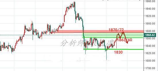 总的来说:结合当前盘面小时图结构走势,隔夜行情拉升后目前持续居高震荡,短线是有调整需求的,日内下方先关注1863/60一带回踩,但主要的支撑依旧看1850/47一带。如果行情进一步走高,再度站上1870上方,从小时图级别是不太好预判上方的进一步高点压制的,可以关注1880附近争夺,但是这样的走势对于操作上却是非常不利的。