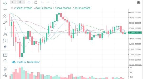 36150-36350附近进场多单,目标看36650-36850,止损35800,下方支撑关注35300,破位看37200,如破位可继续轻仓追涨,看38000,如站稳38000上方,将打开一个新的牛市行情!