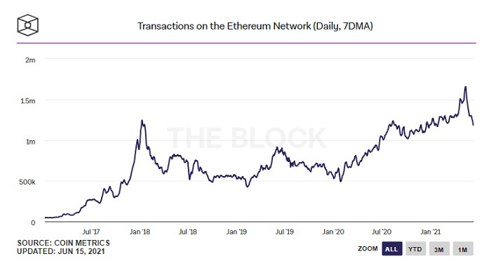 首先,最近几周以太坊交易量显着下降。随着最近加密货币市场整体崩盘,去中心化金融 (DeFi) 和非同质代币 (NFT) 的交易量均有所下降。