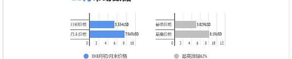 OKB本月于月末达到价格高峰8.15USD,本月月度涨幅达到62%。OKB的生态建设成果凸显,获得了良好的市场表现,得到了很多用户的认可与支持,这是对我们生态建设工作的最大肯定。
