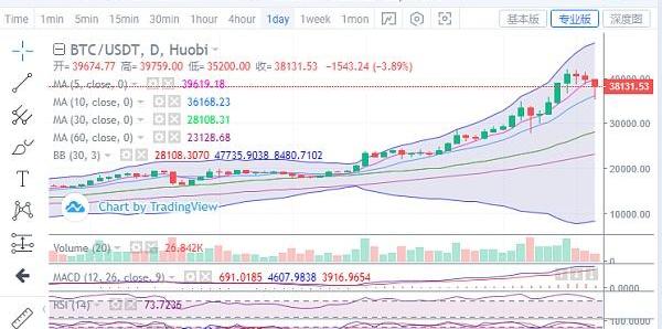 比特币昨日白盘行情维持高位盘整,价格在千余点区间内上下波动,下方支撑关注40000关口。晚间行情破位下行,短时价格暴跌千点,低位触及38500位置情况才逐渐好转。日内凌晨延续下行姿态,四点开盘后更是出现插针行情,低位进一步跌至35200一线。目前价格反弹在38500位置,日内行情大跌大涨,楚初建议各位币友合理控制风险。