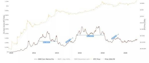 当比特币的价格在2013年上涨时,它在网络动力图上出现了峰值,并在牛市之前的2017年发生了类似事件。波动率的上升引导交易者根据市场开多头和空头头寸并精确地平仓。这一点在2021年仍需指出,波动性正在上升,但是根据链上分析师对比特币市场状况的预测,波动性更大。