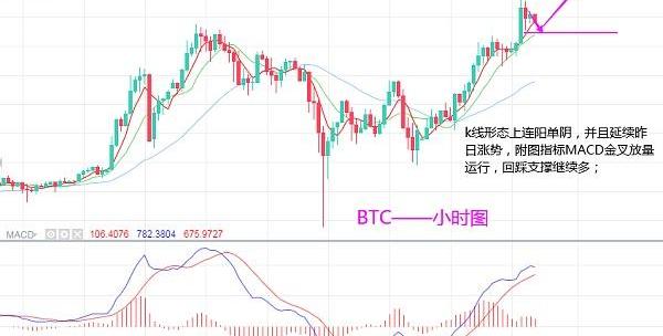 BTC行情分析策略:昨日给大家做了详细的讲解,如果说还是没能收获那就要好好找找自己的问题了;给了两个操作思路重点在欧盘,只做跟随。昨日欧盘碎阳慢涨,突破新高,那么按照给出的策略跟随做多即可,再次刷新新高。历时永远都是用来刷新的。今日方面:单从盘面来看就已经是很清晰了,昨日欧盘上升,凌晨不没有出现较大的回踩而是小幅度的回踩修复,早间延续了昨日走势上涨,所以今日思路首先确定还是继续多,短周期小时图k线形态连阳单阴,价格运行于均线上方;附图指标MACD金叉放量运行建议:回踩欧盘前低点34550一线多,止损34450一线,目标看35000-35200区域;