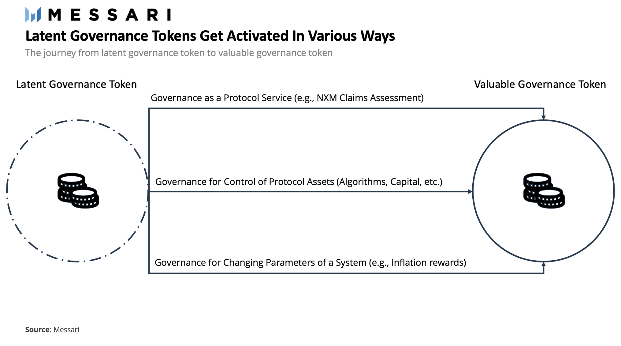 随着加密货币协议价值的增长,治理可以成为改变协议状态的一种有意义的机制。由于这一原则,治理代币的价值是潜在的,但永远存在。治理代币的蛰伏力量可以出于多种目的而被激活,无论是作为协议内需要的功能或服务,控制协议的资产,还是改变特定网络的现有参数。