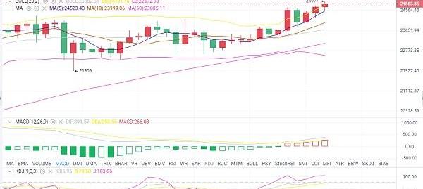 昨天晚上给出的策略,由于不过场点位给的不好,导致有跟单的币友止损了,但是整体思路是没有问题看新高,从盘面上看昨日行情破新高后,有了一波短暂性的回调,币价又从凌晨后开始逐渐反弹,一步步再创新高24977。