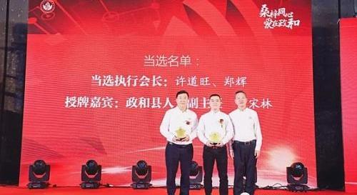 政和县人大常委会副主任何宋林为当选执行会长许道旺、郑辉授牌。