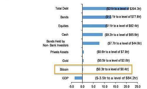 摩根大通指出,“黄金和比特币等另类”货币是此次疫情的主要受益者,两者价格分别增长了27%和227%。但绝对引人注目的huang是,尽管比特币产生了如此巨大的回报,但市值变化却相当小。如图所示:债券市值今年以来增加了13.1万亿美元,股票市值增加了11万亿美元,而比特币却在市值仅增长3000亿美元的情况下创下了惊人的表现,升至24000美元的历史高点。相比之下,价格表现较比特币逊色得多的黄金,今年以来市值也增加了5000亿美元。