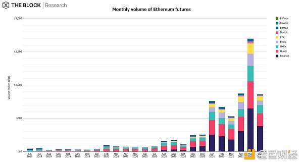 ETH 期货方面,成交量下降 49.3%,至 8620 亿美元: