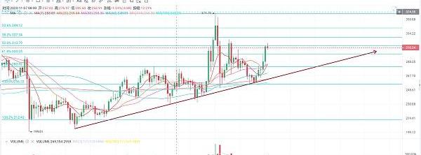 BCH的底部也是在抬升,这就就说明还有继续创出反弹新高的可能。目前运行到斐波那契50%的位置,支撑在300美金附近,如果回调可以适当介入。BCH作为比特币分叉币的老大,表现确实不令人满意,并未走出独立行情,少量配置。