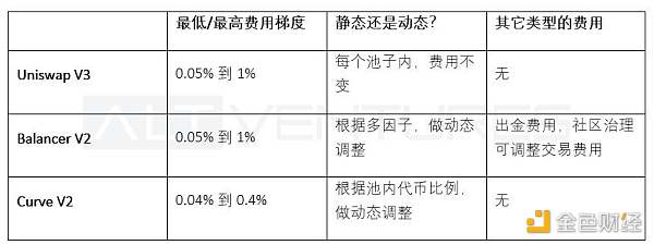 从定价模型、滑点、无常损失、交易费等角度比较分析 Uniswap V3、Curve V2 和 Balancer V2。