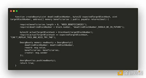 开发者?Daniel Goldman?只是将 0xbun nygirl 最初的重组请求合约逆转一下就实现了这一点,称之为?Deorg,它将允许任何用户在未来的一个区块中创建支付给矿工的赏金,如果发现矿工进行恶意行为,则会削减对其的奖励(在经过一定数量的确认后,Deorg 实际上通过要求某个高度的区块是不变的,以此对良好行为予以确认,Daniel 善意地指出了这一点),但它确实说明,链重组所面临的多数经济激励措施可以被重新设计。