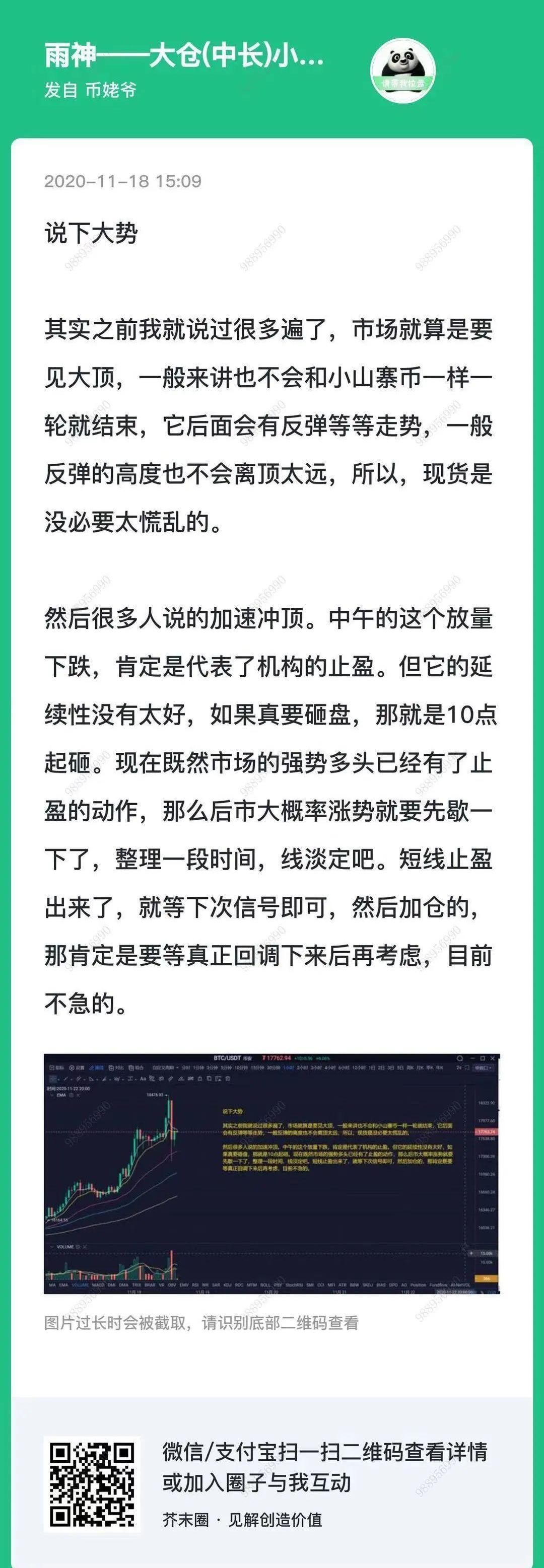 1900/1/1 0:00:00比特币分析BTC:大饼长线不用说我们继续看涨,我预计真正的大行情是在明年,两万一定不是最后的终点,对大趋势的描述可以回顾一下11月6日的分析.