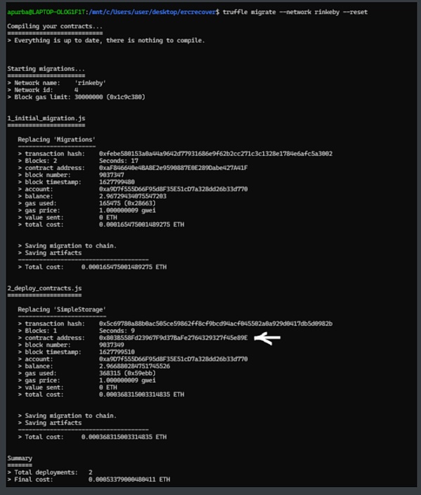 然后部署合同。部署后复制simplestorage的地址,替换为verifyingContract下app.js第76行的地址。
