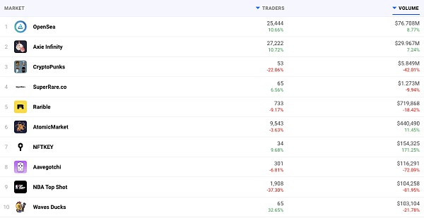 根据 DappRadar 数据显示,在过去的 30 天里,NFT 十大交易市场的销售额达到了 18.6 亿美元。