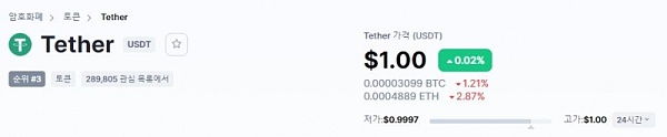 USDT 的价值固定为 1 美元(来源 = CoinMarketCap)
