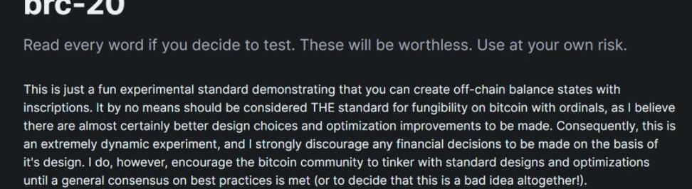 显然这些BRC-20的代币和ERC-20的代币实用价值相去甚远,只是一种在比特币中存储脚本文件并使用该文件作为一种方式将代币意义赋予satoshis,然后允许它们从一个用户转移到另一个用户的方式。