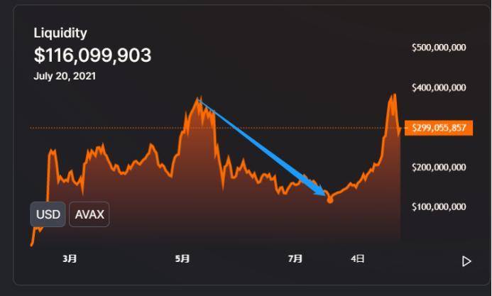 5 月,穿山甲 TVL 首次突破 3 亿美元。此后一路下滑,持续到 7 月中旬,TVL 跌至 1 亿美元,跌幅近 70%。