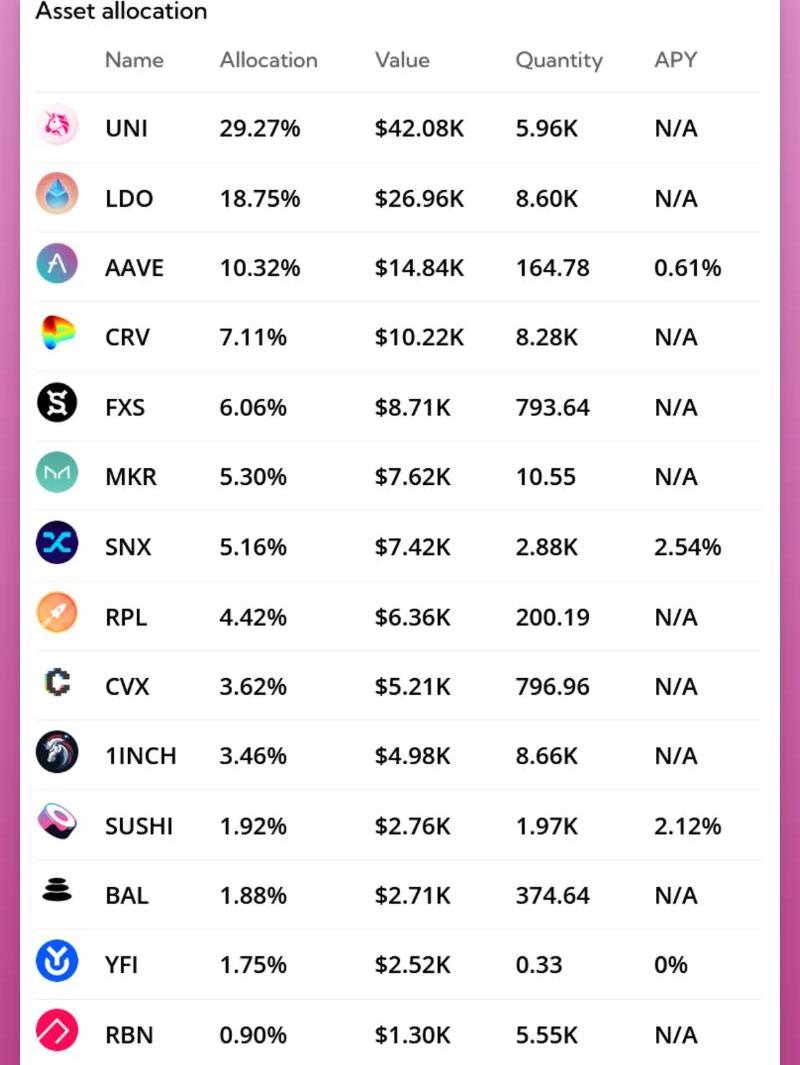 就个人而言,像DeFi这样的指数可能对我没有吸引力,因为我更喜欢自己挑选代币。然而,其他指数,如元宇宙、AI或NFT,我更乐意选择。