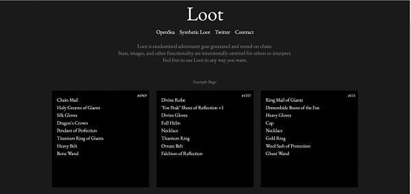 那么,NFT如何成为道具?在头像类NFT或者说在收藏品类NFT依旧持续火热的市场,大众对于NFT的道具功能并没有过多地期待与关注。但是,最近爆火的Loot,通过自下而上的方式,实验性的打造着NFT道具。