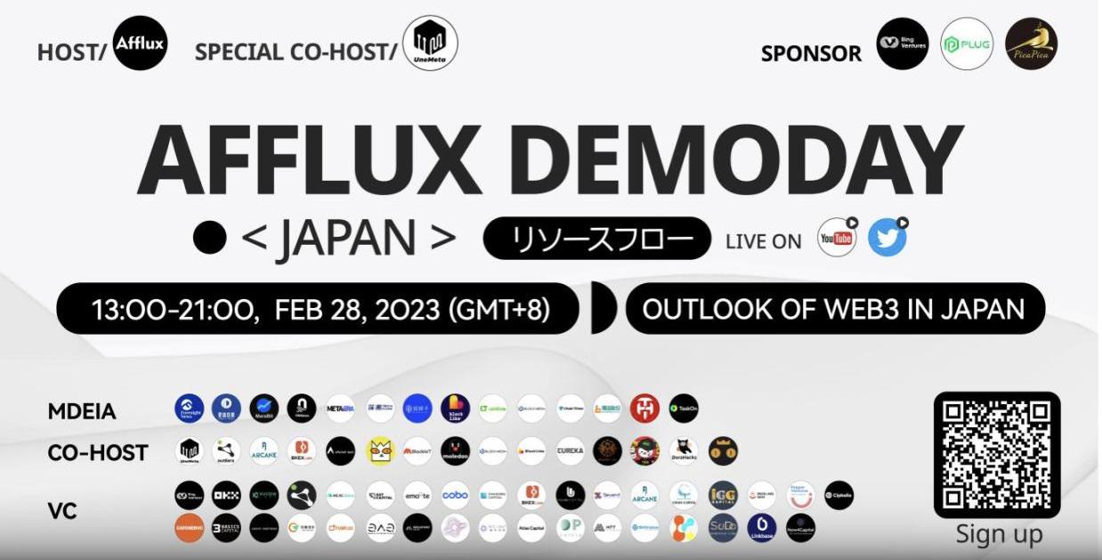 今天,我们很高兴推出主题为「日本Web3的展望:リソースフロー」的路演,这是一个将黑客马拉松、峰会和路演全部整合为一个流线型体验的虚拟活动,于2023年2月28日举行。我们诚挚邀请您参加Afflux路演,与我们共同探讨日本Web3技术的发展前景和最佳实践,为行业专家、企业代表、投资人、技术爱好者提供一个交流合作的平台。希望通过此次活动,为日本Web3的发展提供更多的动力和支持,为数字经济的转型创新贡献力量。