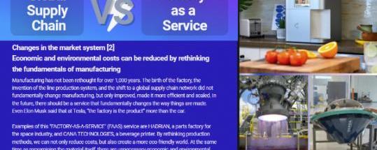 工厂的诞生,生产线的发明以及全球供应链网络的发展从根本上改变了制造业,但目前我们能做的知识通过改进技术让其更高效或者更加规模化从而降低成本,未来应该是有一种服务,能从根本上改变事务的制作方式。ElonMusk也说过:「在特斯拉,工厂比汽车更像是产品」。这种工厂即服务更可能成为可持续性的系统。